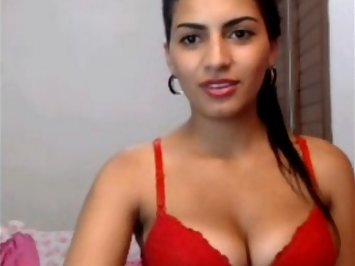 Gorgeous Indian babe in red bra on...